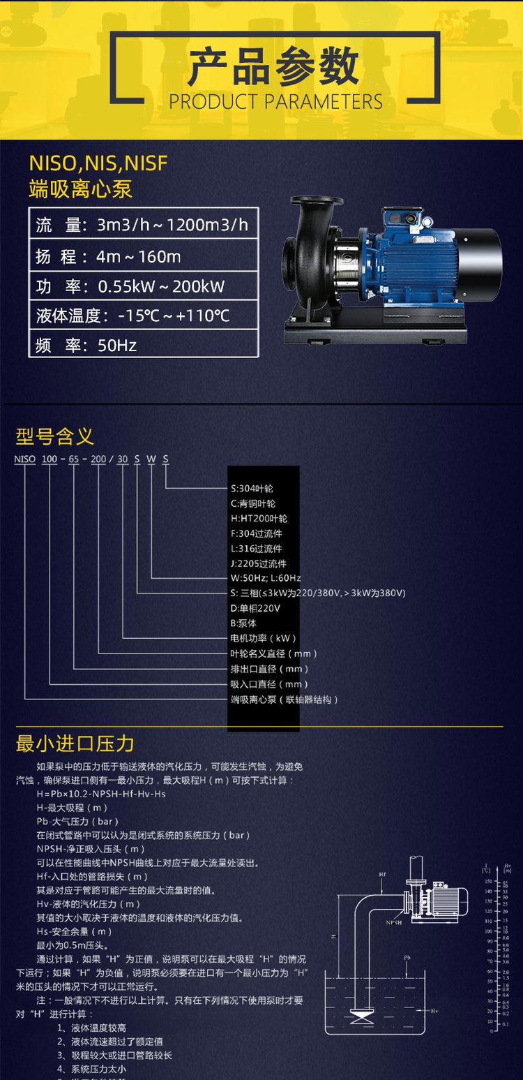 産品名稱:NISO,NIS,NISF端吸離心泵 技術參數 ...