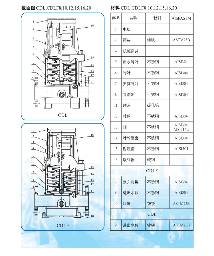 産品名稱:CDL,CDLF輕型立式多級離心泵