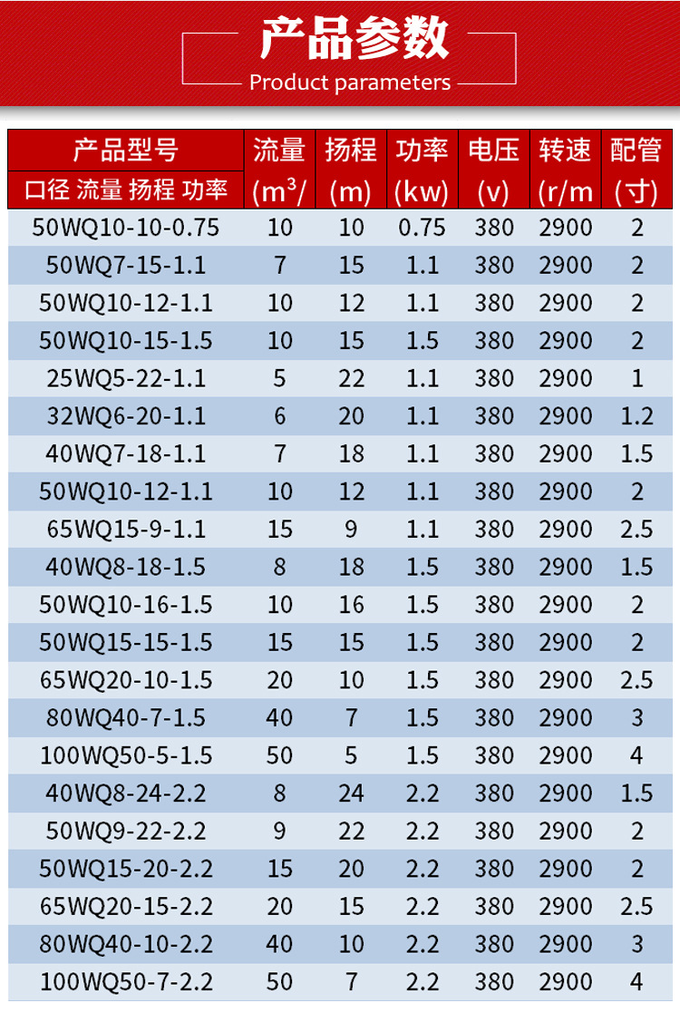 适用範圍:WQ不鏽鋼無堵塞排污泵使用單(三)相電源,整體👩🍼不鏽鋼結構。配有切割裝置,耐腐蝕性能強(PH值4~10),能切斷長纖維、…